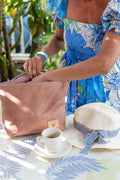 Less is more when it comes to cleaning your leather bag or canvas bag. Simply blot the undesired spot immediately with a dry white cloth to absorb the moisture. Avoid rubbing. If needed, mix mild dish soap with water (3:1 ratio) to blot the area. Keep in mind, the stain will look its worst on the day of the incident, but over time, the stain will disperse through the protein fibers and become part of the beautiful worn in look.