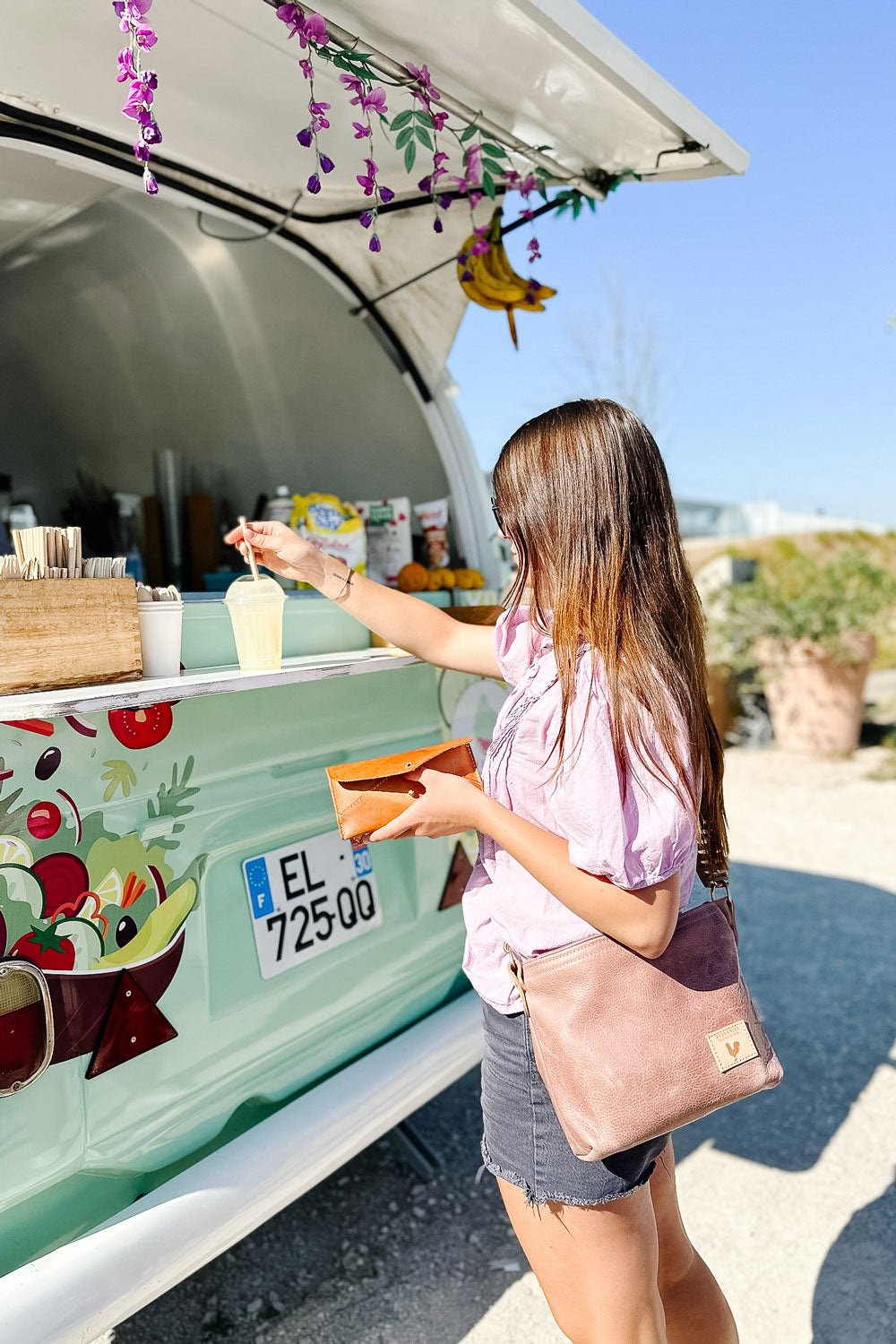 Less is more when it comes to cleaning your leather bag or canvas bag. Simply blot the undesired spot immediately with a dry white cloth to absorb the moisture. Avoid rubbing. If needed, mix mild dish soap with water (3:1 ratio) to blot the area. Keep in mind, the stain will look its worst on the day of the incident, but over time, the stain will disperse through the protein fibers and become part of the beautiful worn in look.