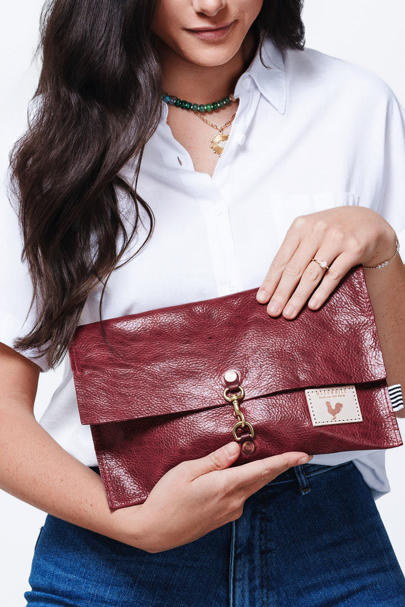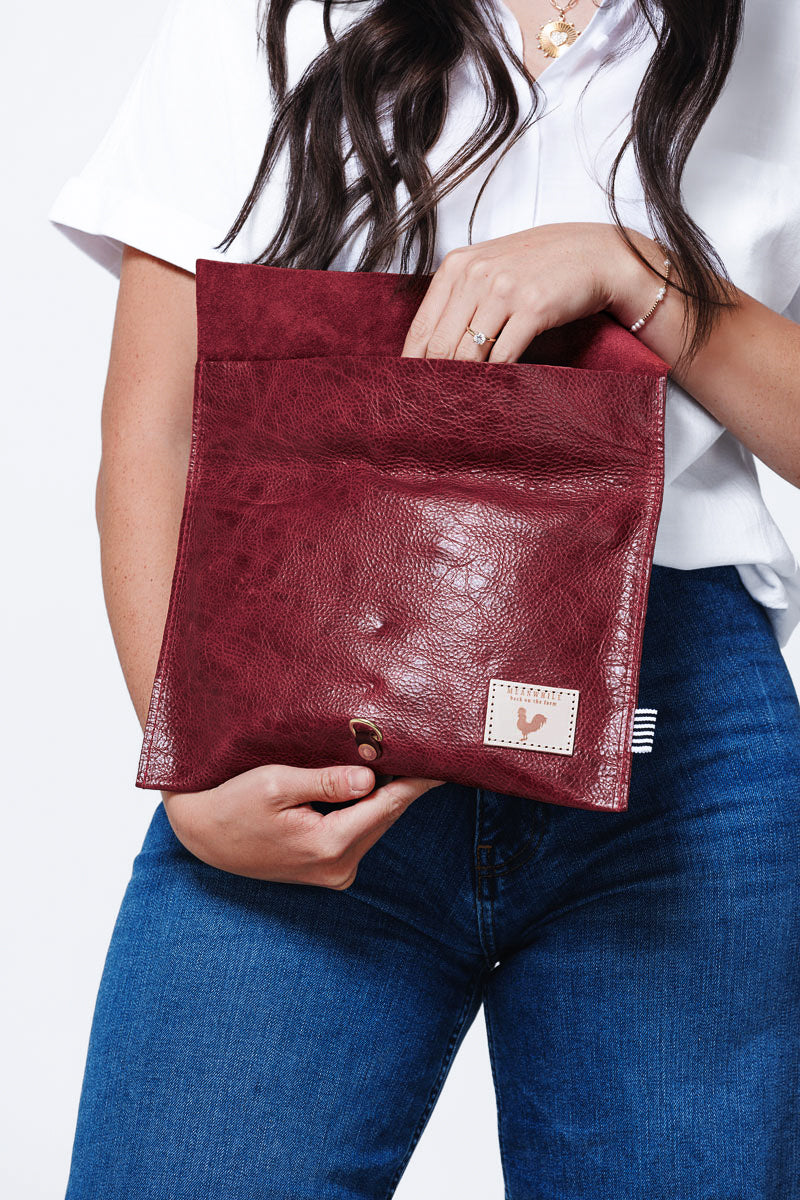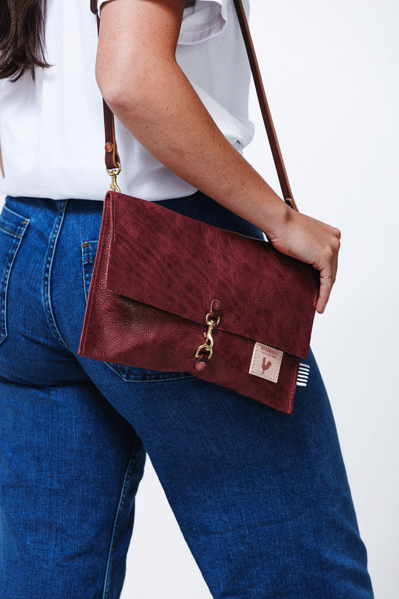 Less is more when it comes to cleaning your leather bag or canvas bag. Simply blot the undesired spot immediately with a dry white cloth to absorb the moisture. Avoid rubbing. If needed, mix mild dish soap with water (3:1 ratio) to blot the area. Keep in mind, the stain will look its worst on the day of the incident, but over time, the stain will disperse through the protein fibers and become part of the beautiful worn in look.