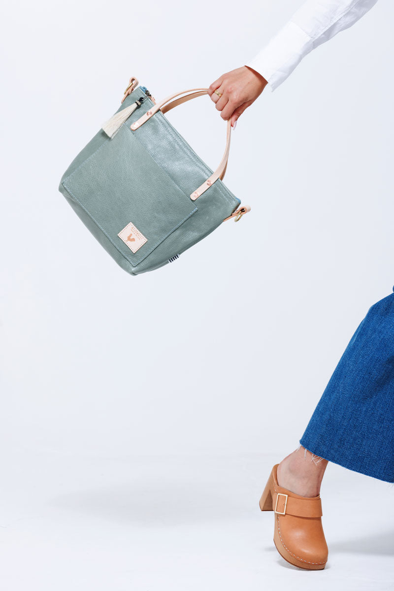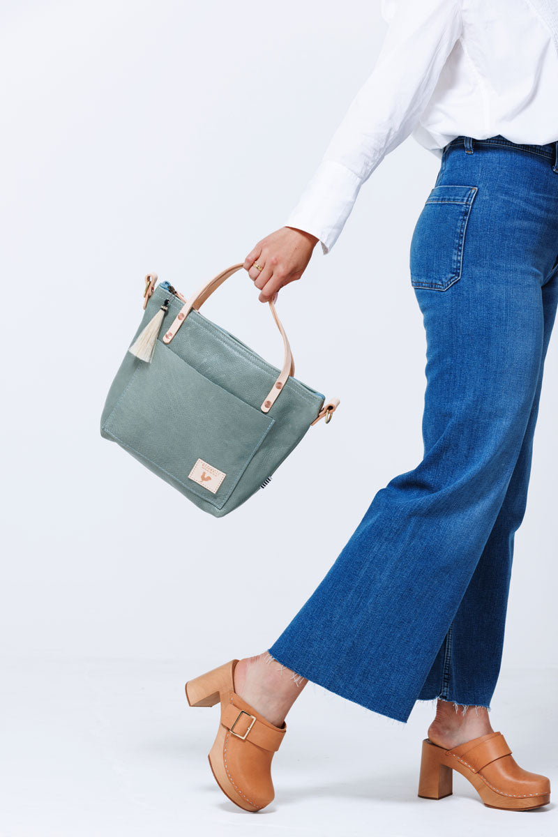 Less is more when it comes to cleaning your leather bag or canvas bag. Simply blot the undesired spot immediately with a dry white cloth to absorb the moisture. Avoid rubbing. If needed, mix mild dish soap with water (3:1 ratio) to blot the area. Keep in mind, the stain will look its worst on the day of the incident, but over time, the stain will disperse through the protein fibers and become part of the beautiful worn in look.