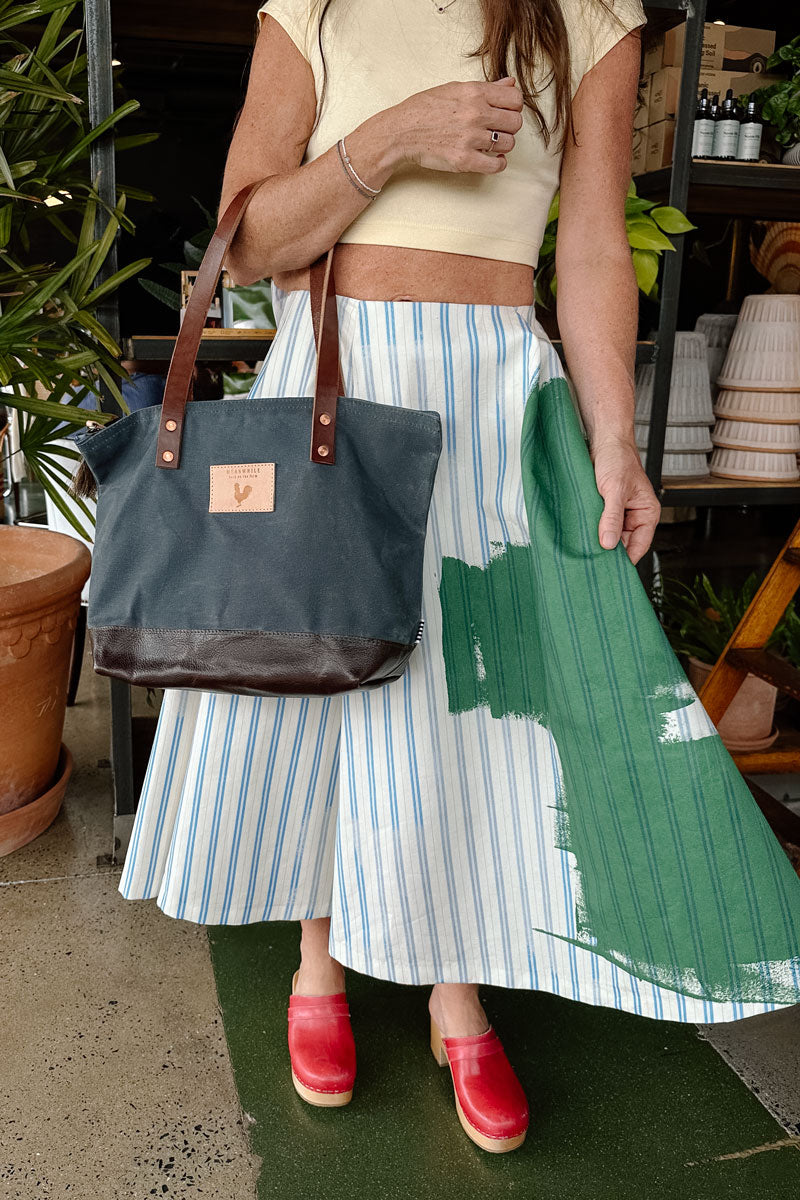 Less is more when it comes to cleaning your leather bag or canvas bag. Simply blot the undesired spot immediately with a dry white cloth to absorb the moisture. Avoid rubbing. If needed, mix mild dish soap with water (3:1 ratio) to blot the area. Keep in mind, the stain will look its worst on the day of the incident, but over time, the stain will disperse through the protein fibers and become part of the beautiful worn in look.