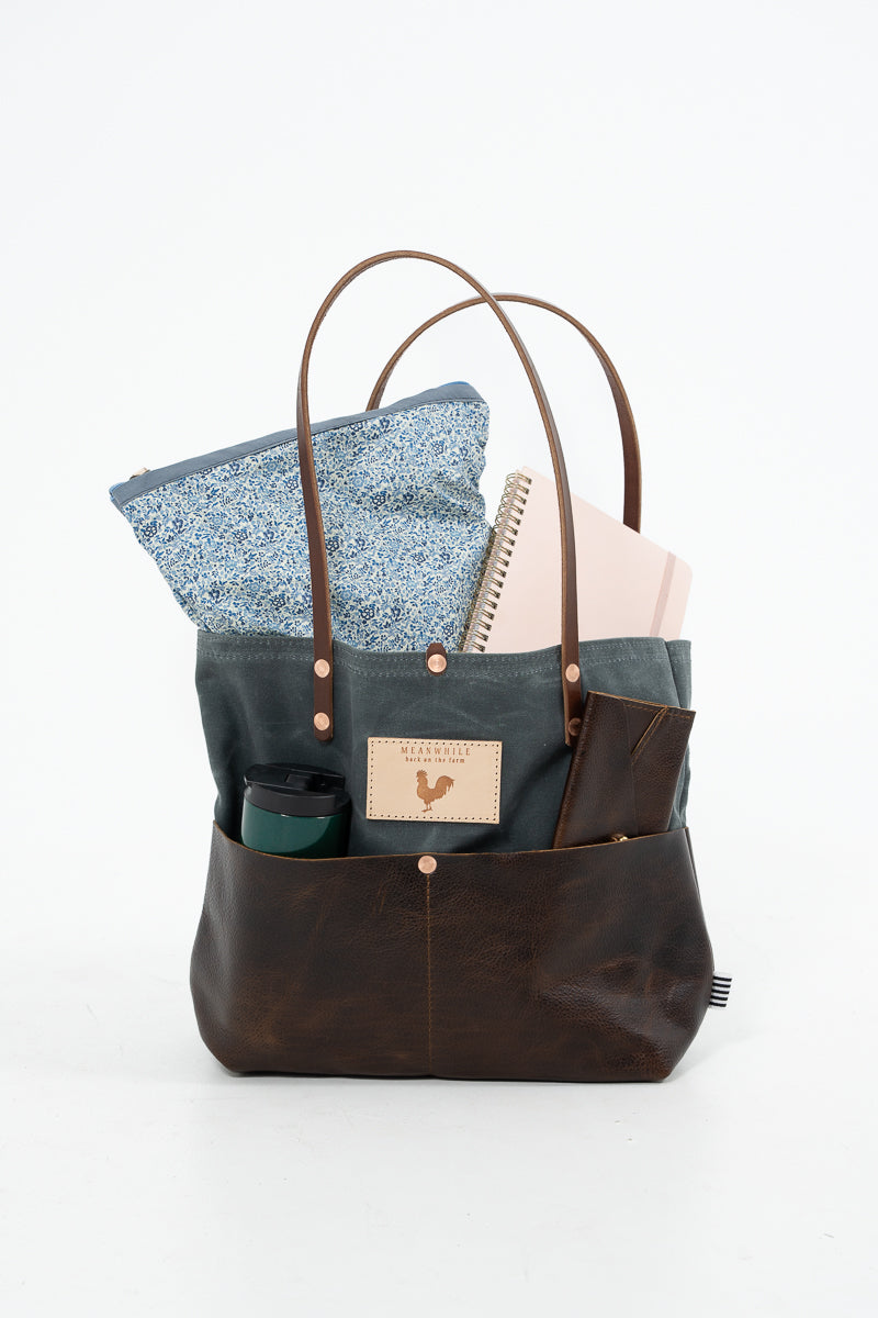 Less is more when it comes to cleaning your leather bag or canvas bag. Simply blot the undesired spot immediately with a dry white cloth to absorb the moisture. Avoid rubbing. If needed, mix mild dish soap with water (3:1 ratio) to blot the area. Keep in mind, the stain will look its worst on the day of the incident, but over time, the stain will disperse through the protein fibers and become part of the beautiful worn in look.