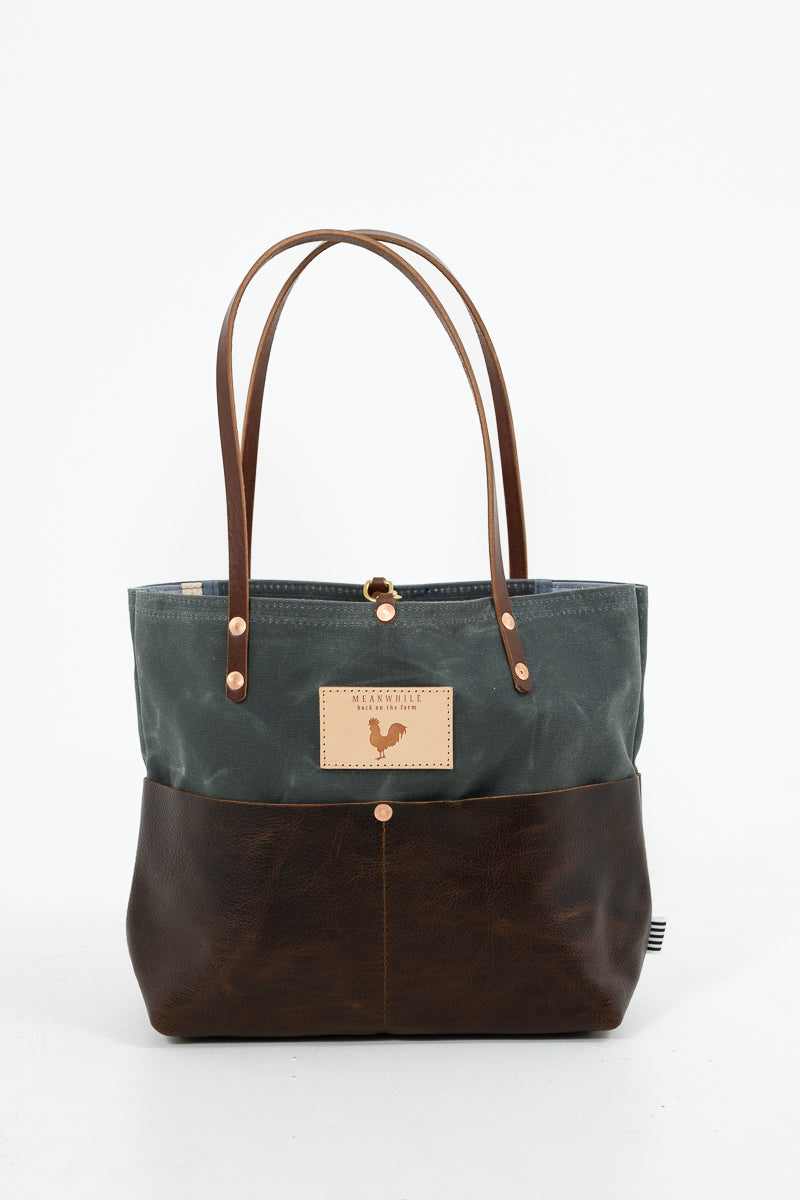 *Waxed Canvas: The canvas is treated with waxes and oils from a multi-generational formula. This treatment affords the fabric a lifelong resistance to inclement weather and everyday use. The canvas will age and function similarly to leather. Its waxes will move around the bag, creating character.