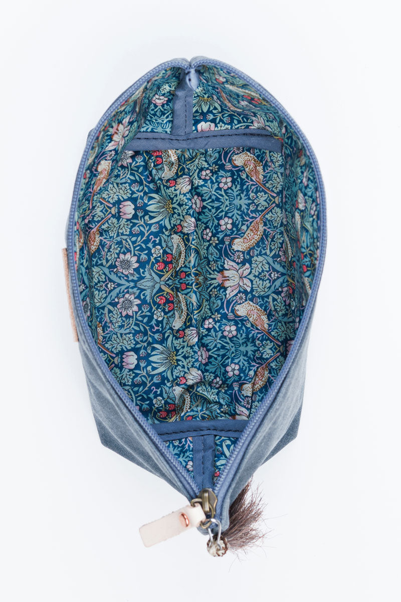 • Lined with Strawberry Thief Liberty of London fabric that’s lightweight, water-resistant, and wipeable