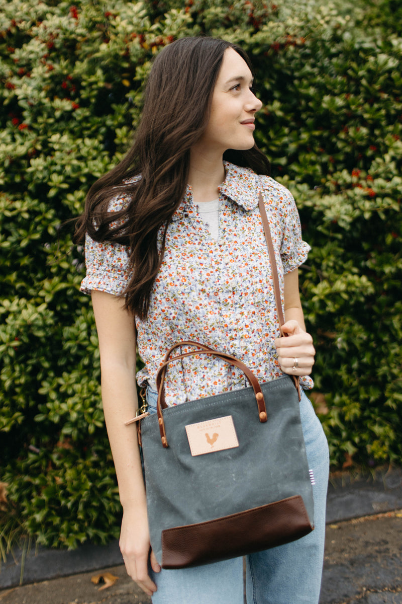 *Waxed Canvas. The canvas is treated with waxes and oils from a multi-generational formula. This treatment affords the fabric a lifelong resistance to inclement weather and everyday use. The canvas will age and function similarly to leather. Its waxes will move around the bag, creating character.