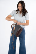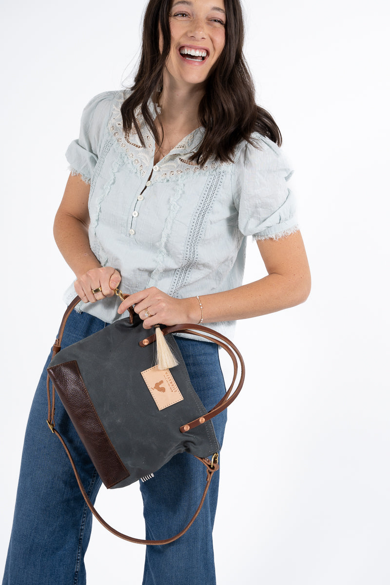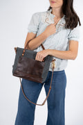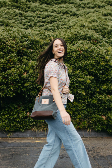 Less is more when it comes to cleaning your leather bag or canvas bag. Simply blot the undesired spot immediately with a dry white cloth to absorb the moisture. Avoid rubbing. If needed, mix mild dish soap with water (3:1 ratio) to blot the area. Keep in mind, the stain will look its worst on the day of the incident, but over time, the stain will disperse through the protein fibers and become part of the beautiful worn in look.