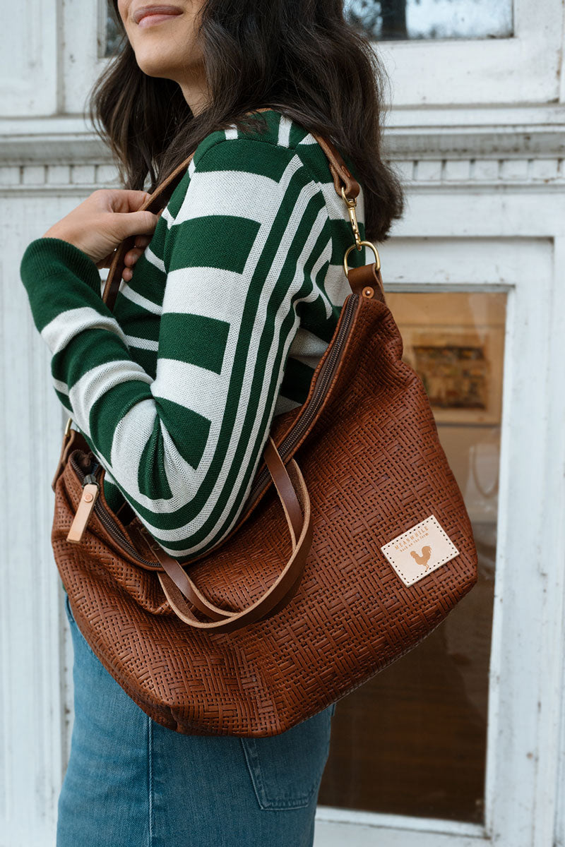 Less is more when it comes to cleaning your leather bag or canvas bag. Simply blot the undesired spot immediately with a dry white cloth to absorb the moisture. Avoid rubbing. If needed, mix mild dish soap with water (3:1 ratio) to blot the area. Keep in mind, the stain will look its worst on the day of the incident, but over time, the stain will disperse through the protein fibers and become part of the beautiful worn in look.