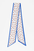 Strawberry fields forever! Enjoy this little white silk scarf, adorned with delicate red strawberries and finished with blue-lined edges- a perfect way to add a splash of cheer and color to your favorite bag. Tie or wrap them around your bag's handles for a touch of personality or to accentuate a monochromatic look – these delightful scarves will charm their way into your hearts and onto your bags.
