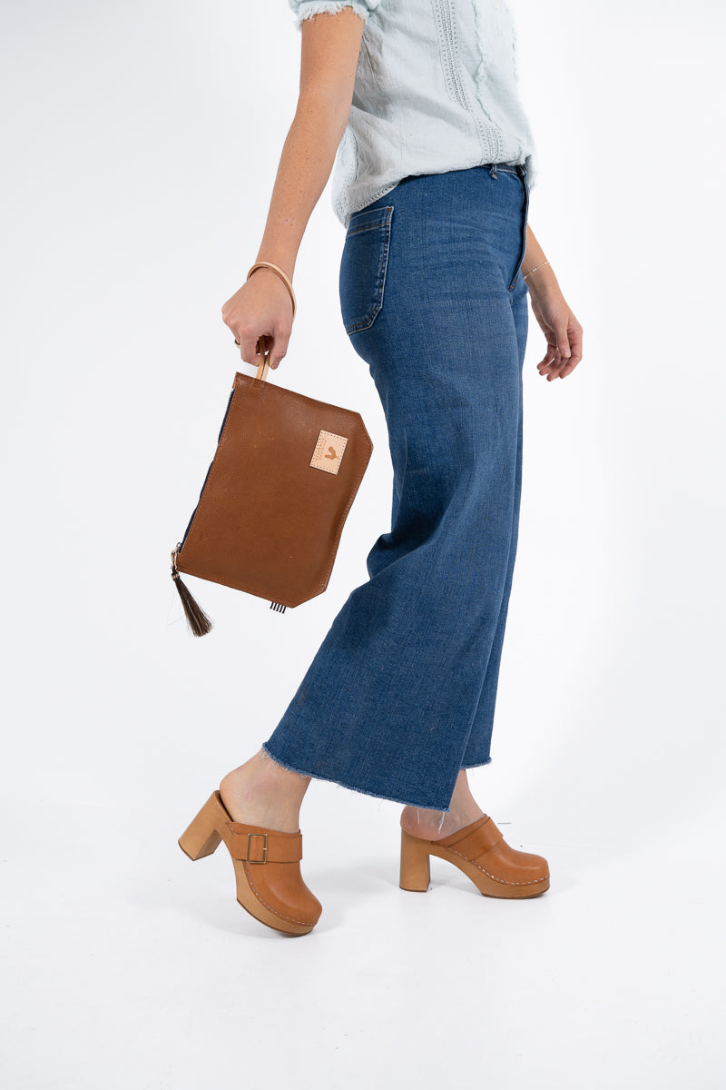 Less is more when it comes to cleaning your leather bag or canvas bag. Simply blot the undesired spot immediately with a dry white cloth to absorb the moisture. Avoid rubbing. If needed, mix mild dish soap with water (3:1 ratio) to blot the area. Keep in mind, the stain will look its worst on the day of the incident, but over time, the stain will disperse through the protein fibers and become part of the beautiful worn in look.